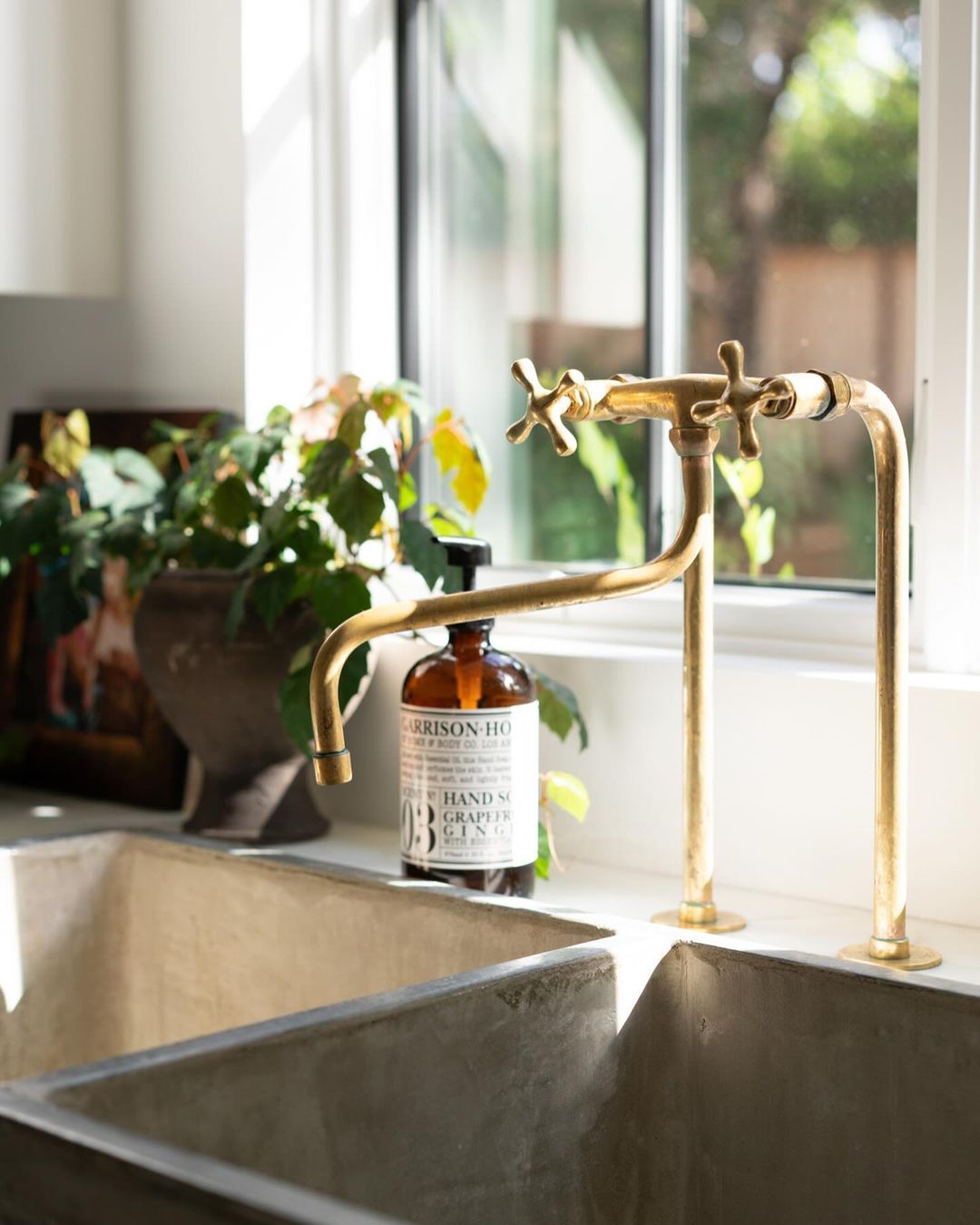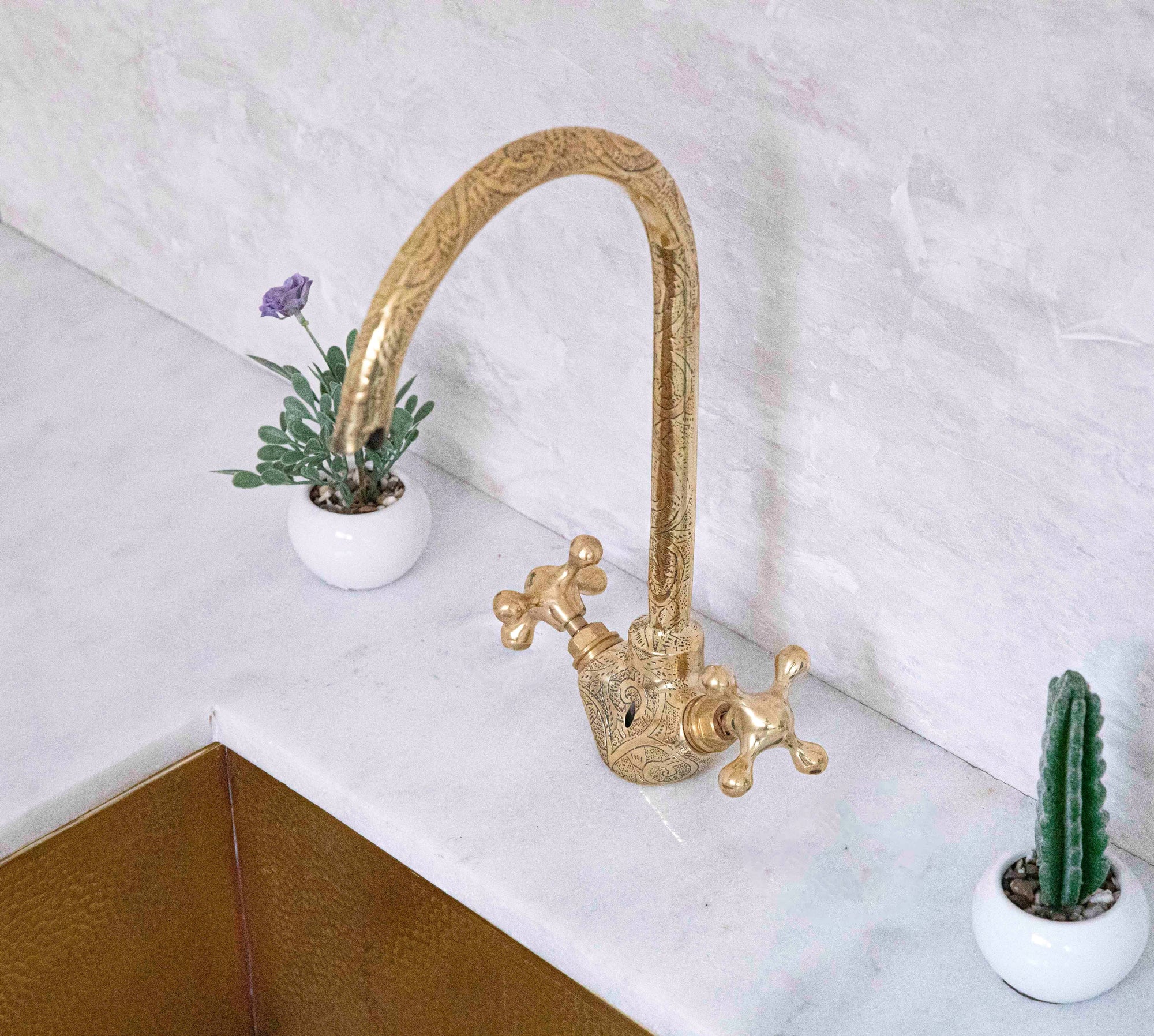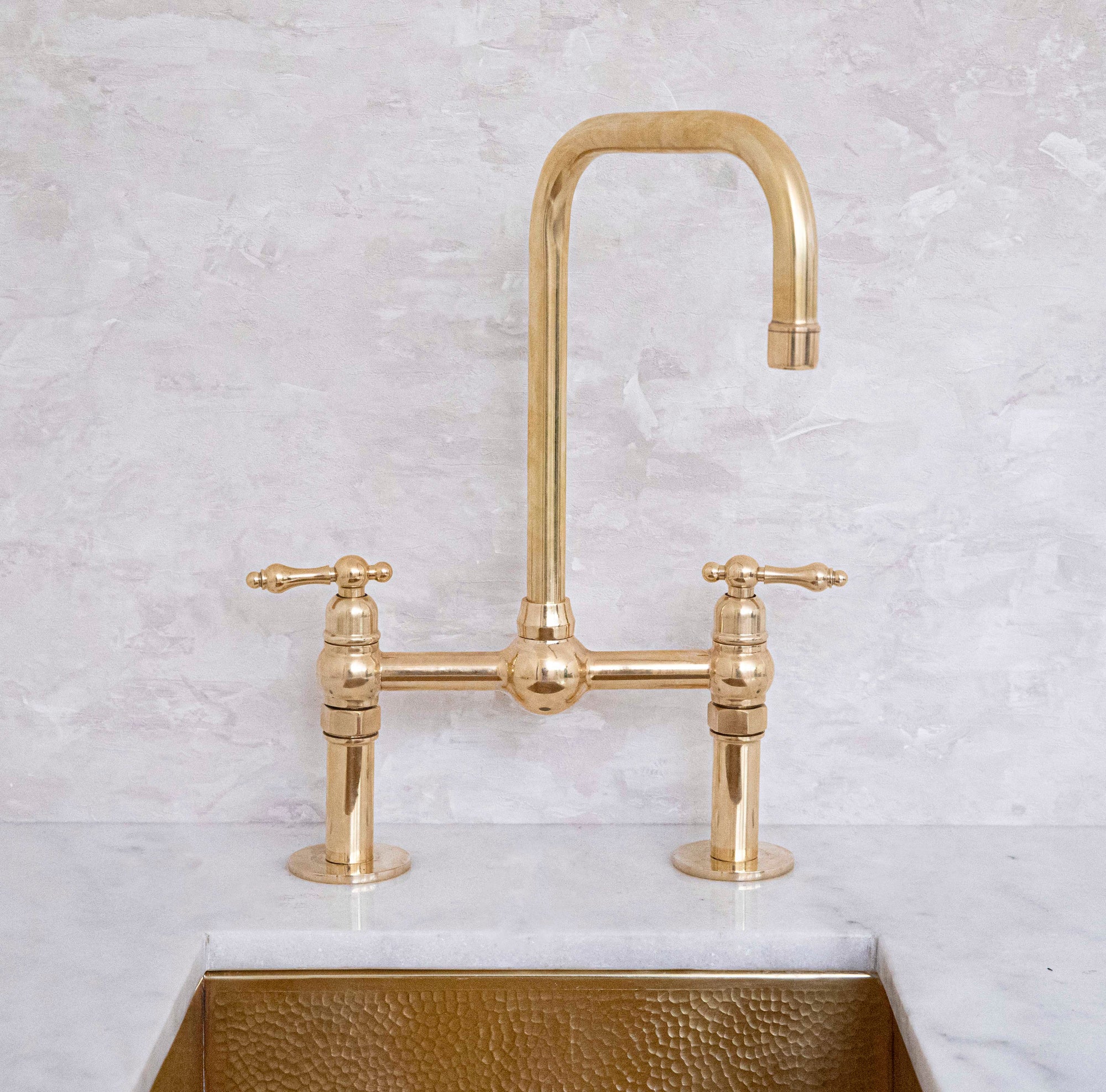 Brass Bridge Kitchen Faucet With Curved Legs