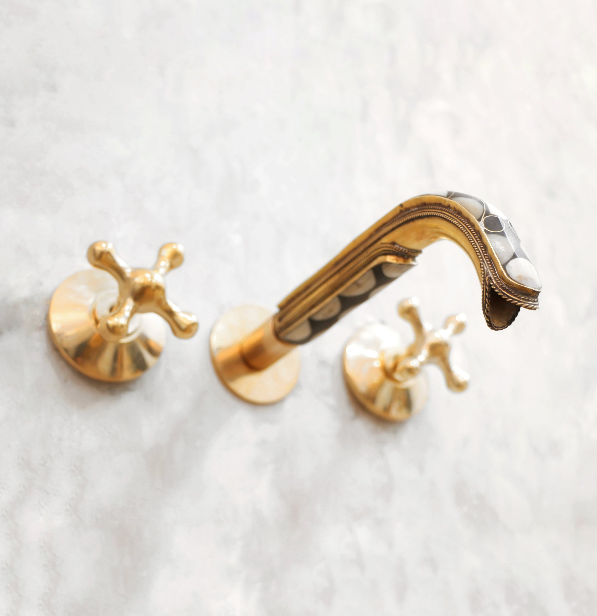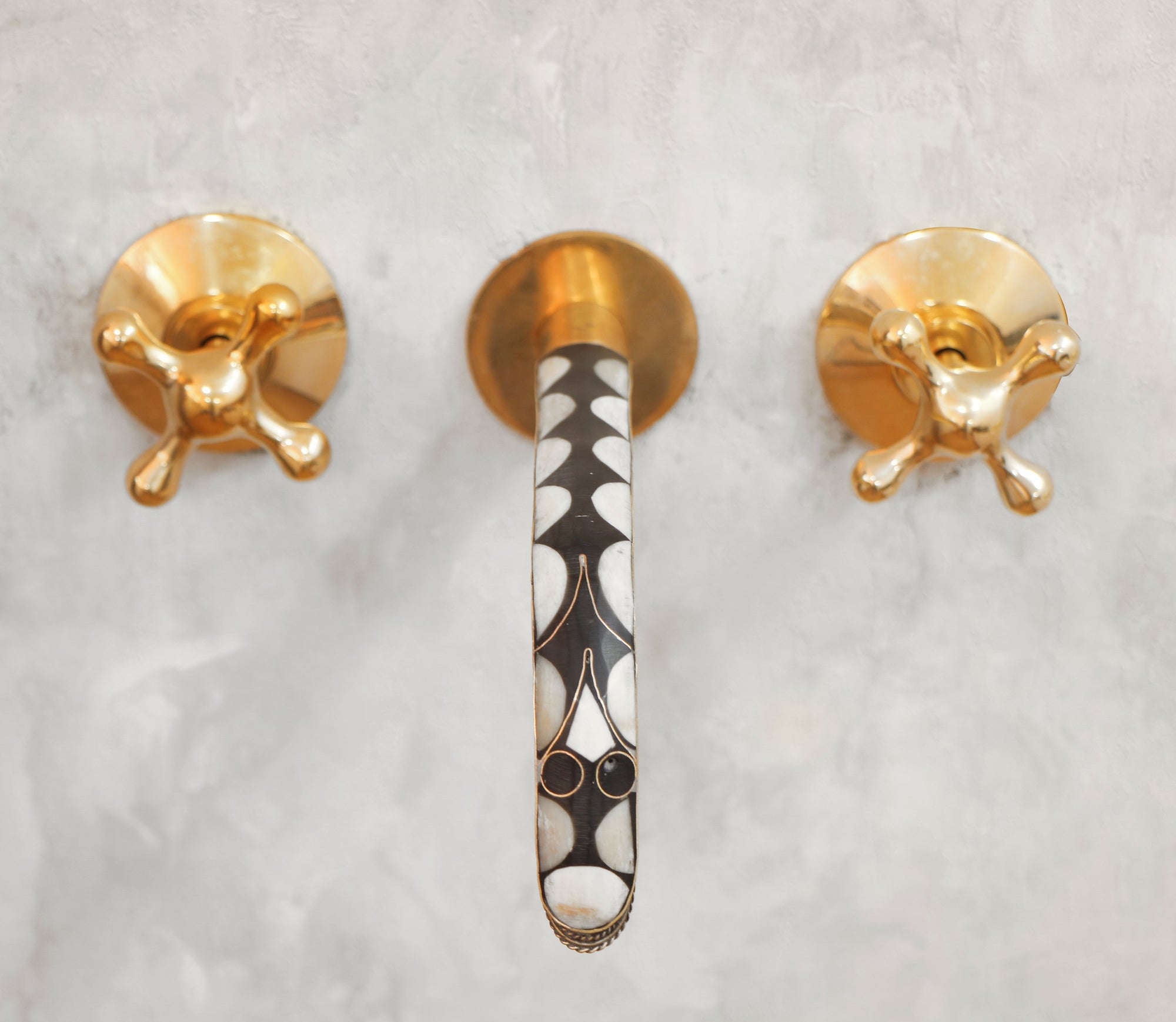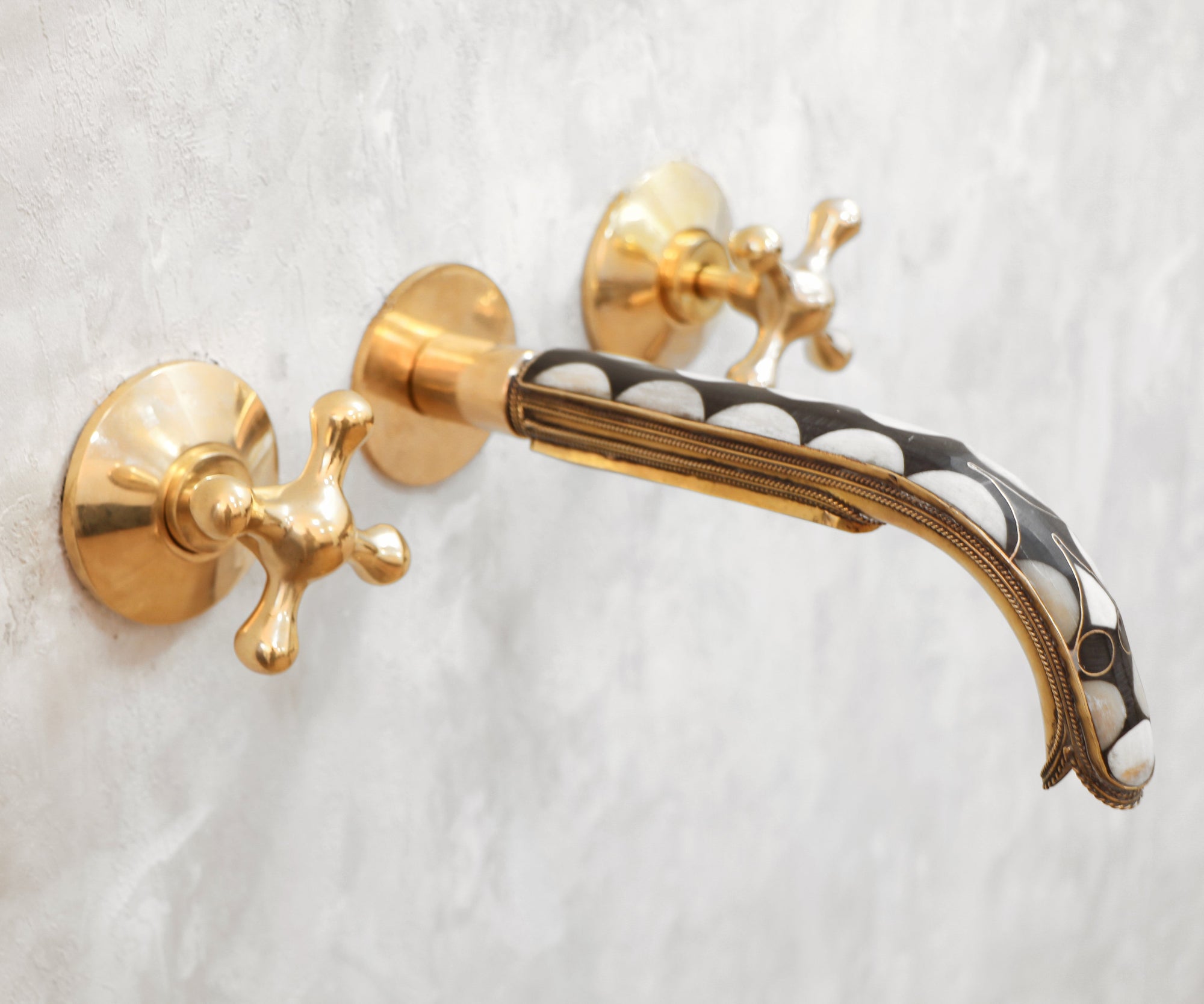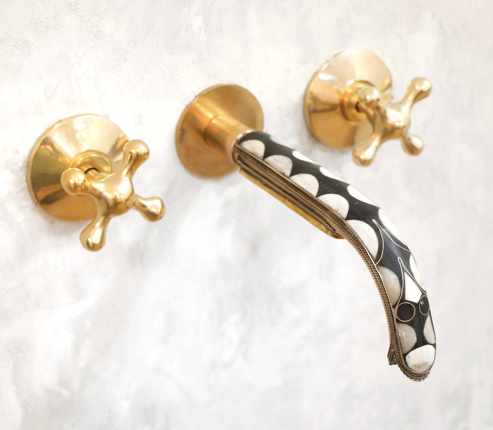 Handcrafted Wood and Brass Wall Mounted Faucet, Brass Resin Faucet for Bathroom