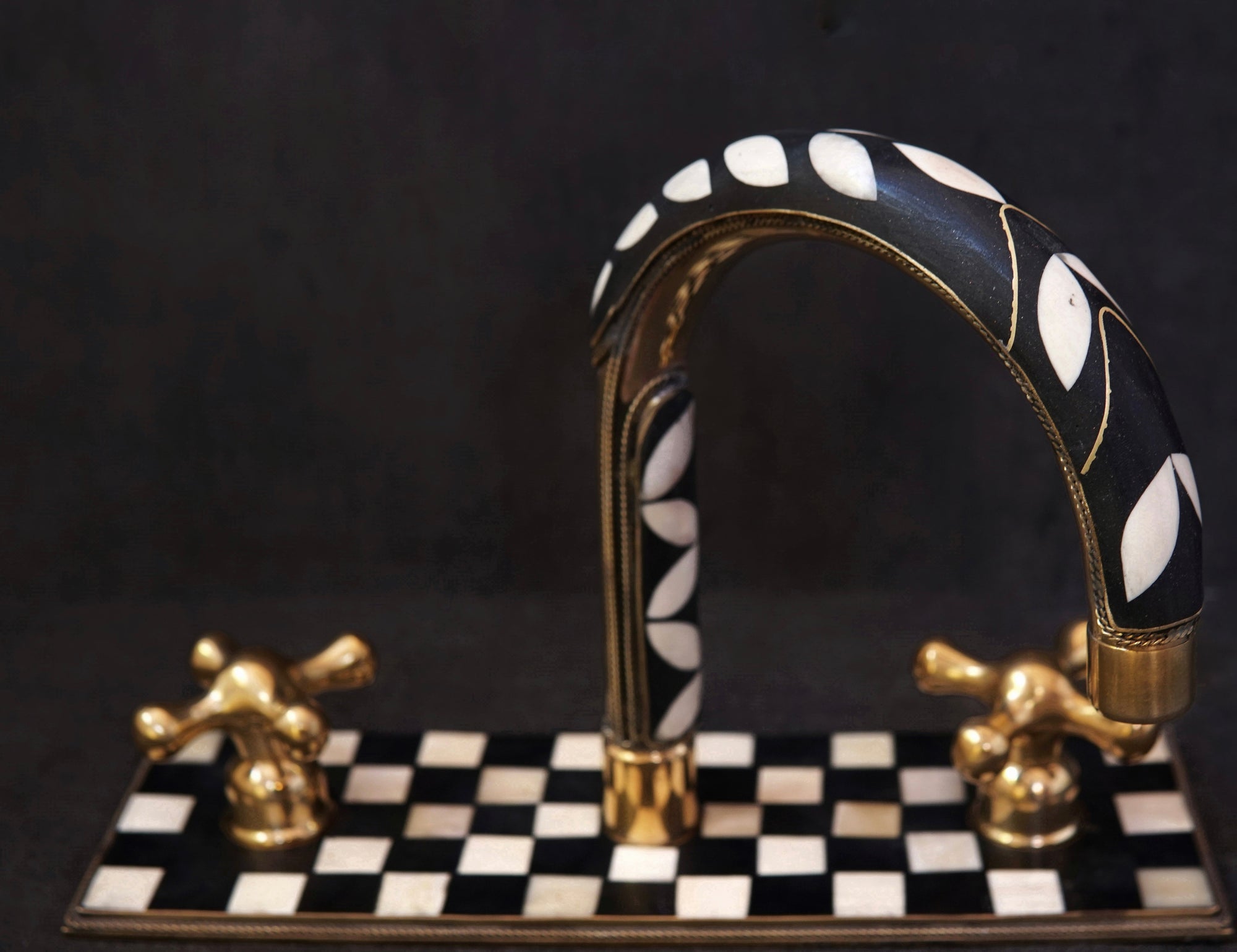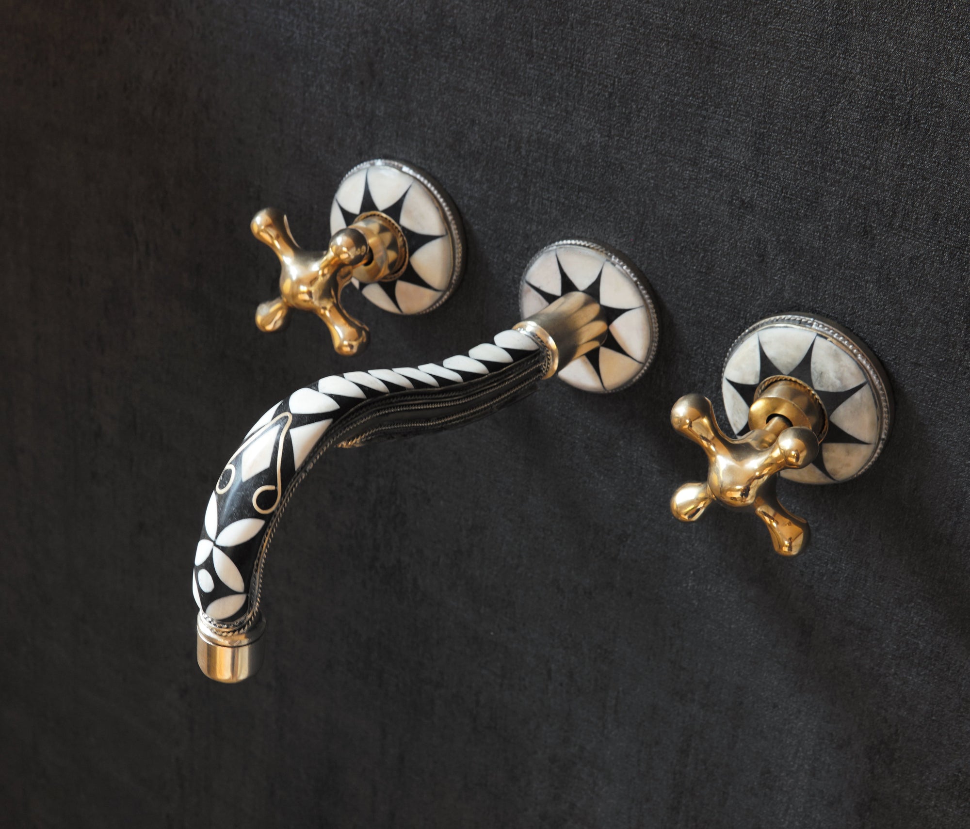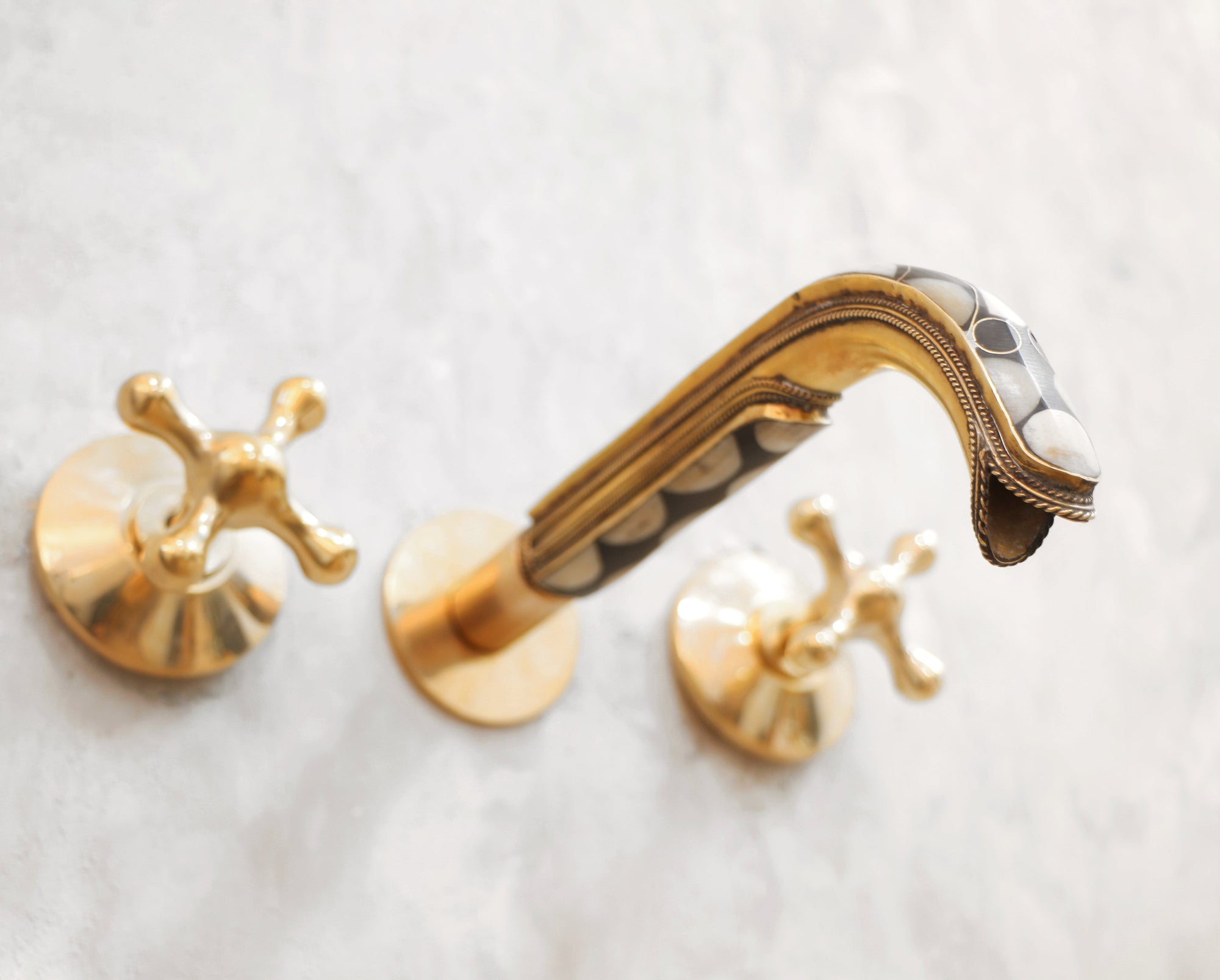 Handcrafted Wood and Brass Wall Mounted Faucet, Brass Resin Faucet for Bathroom