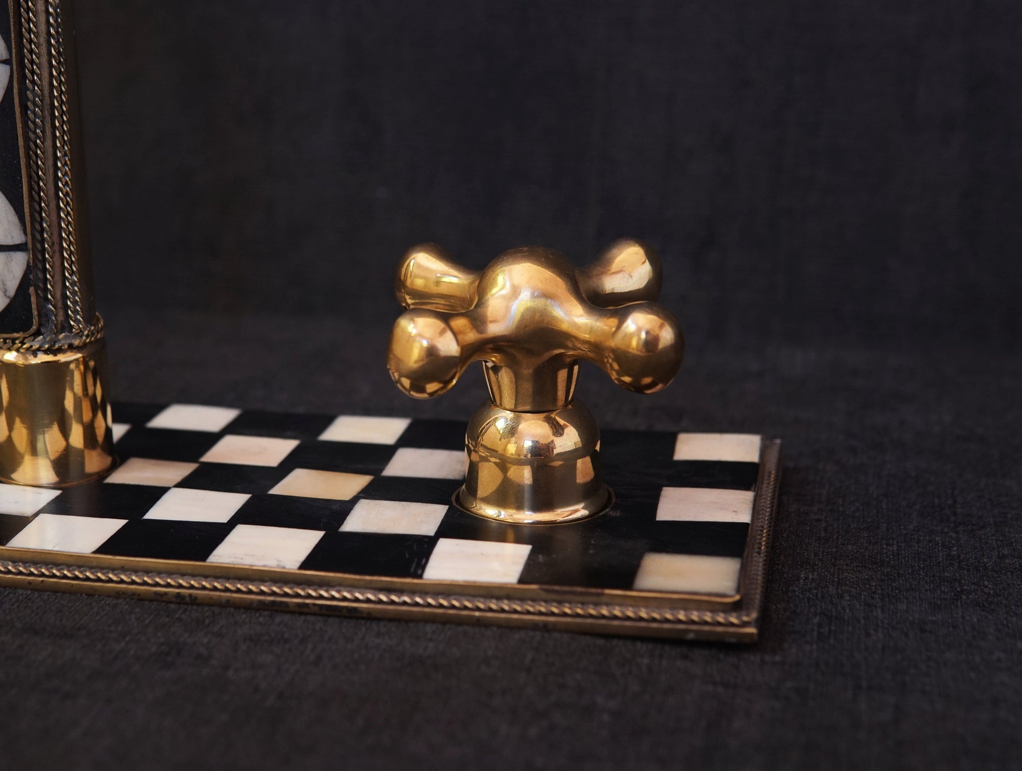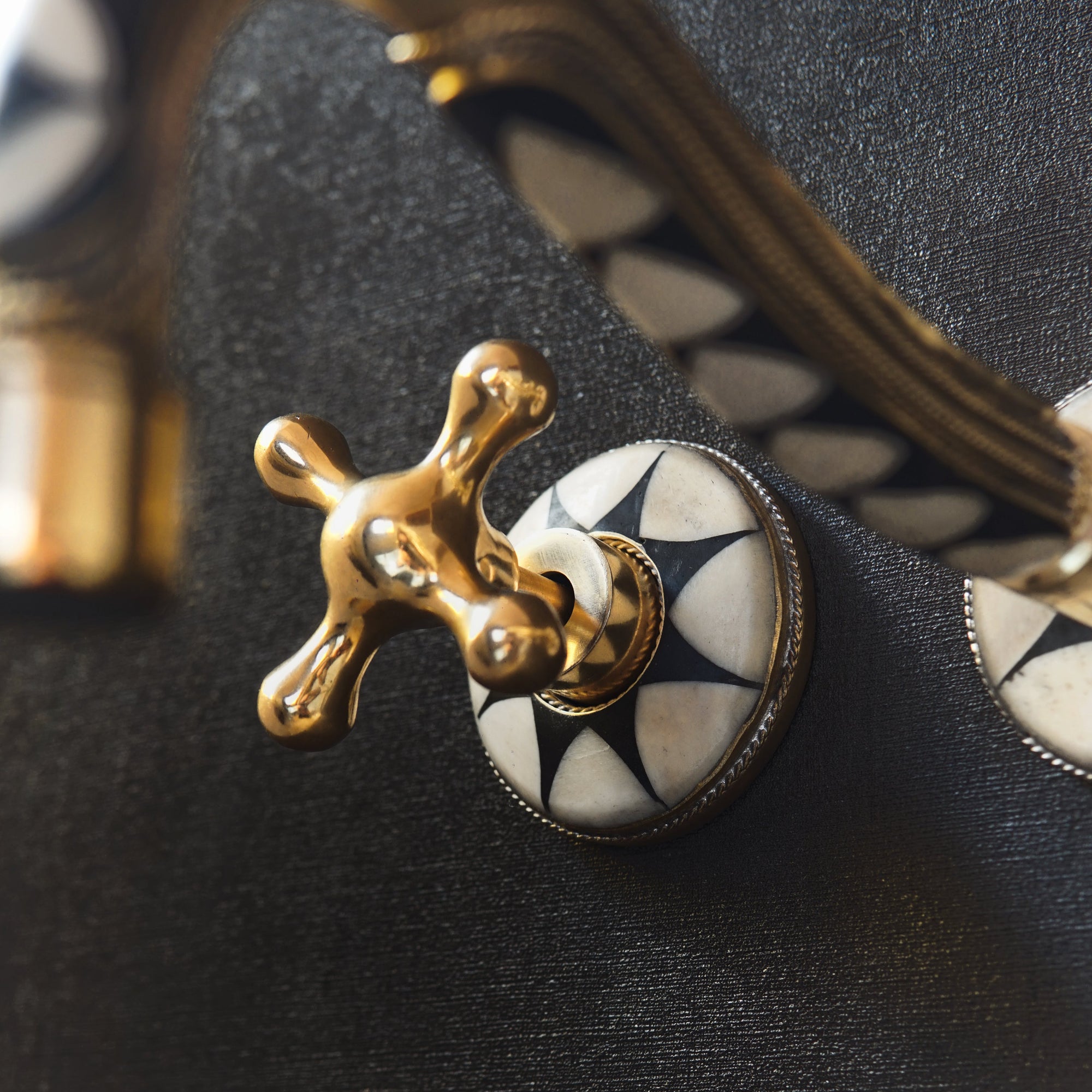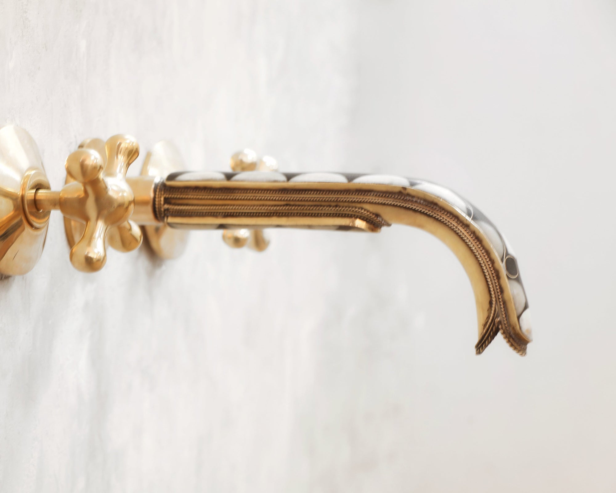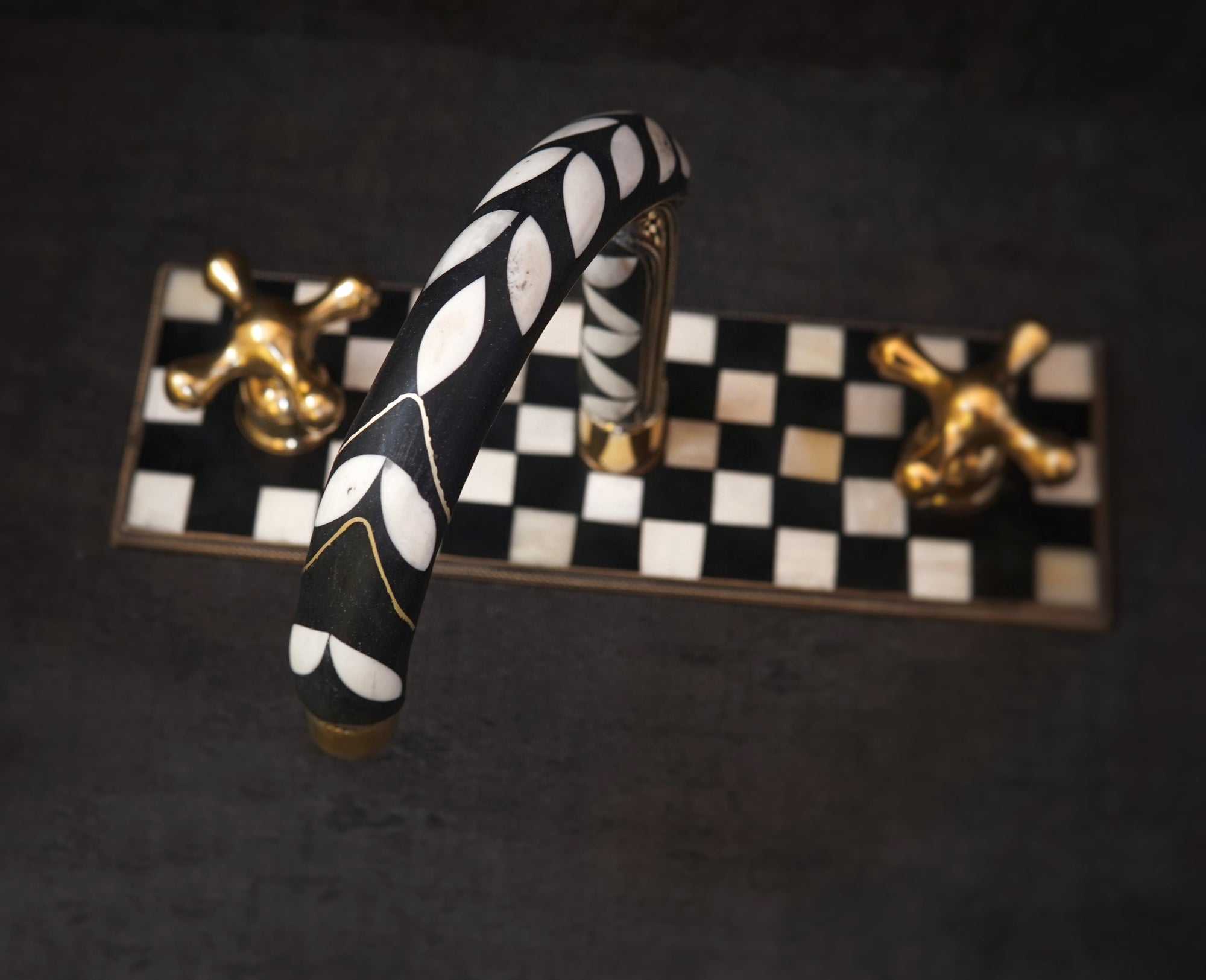 Handcrafted Wood and Brass Wall Mounted Faucet, Brass Resin Faucet for Bathroom