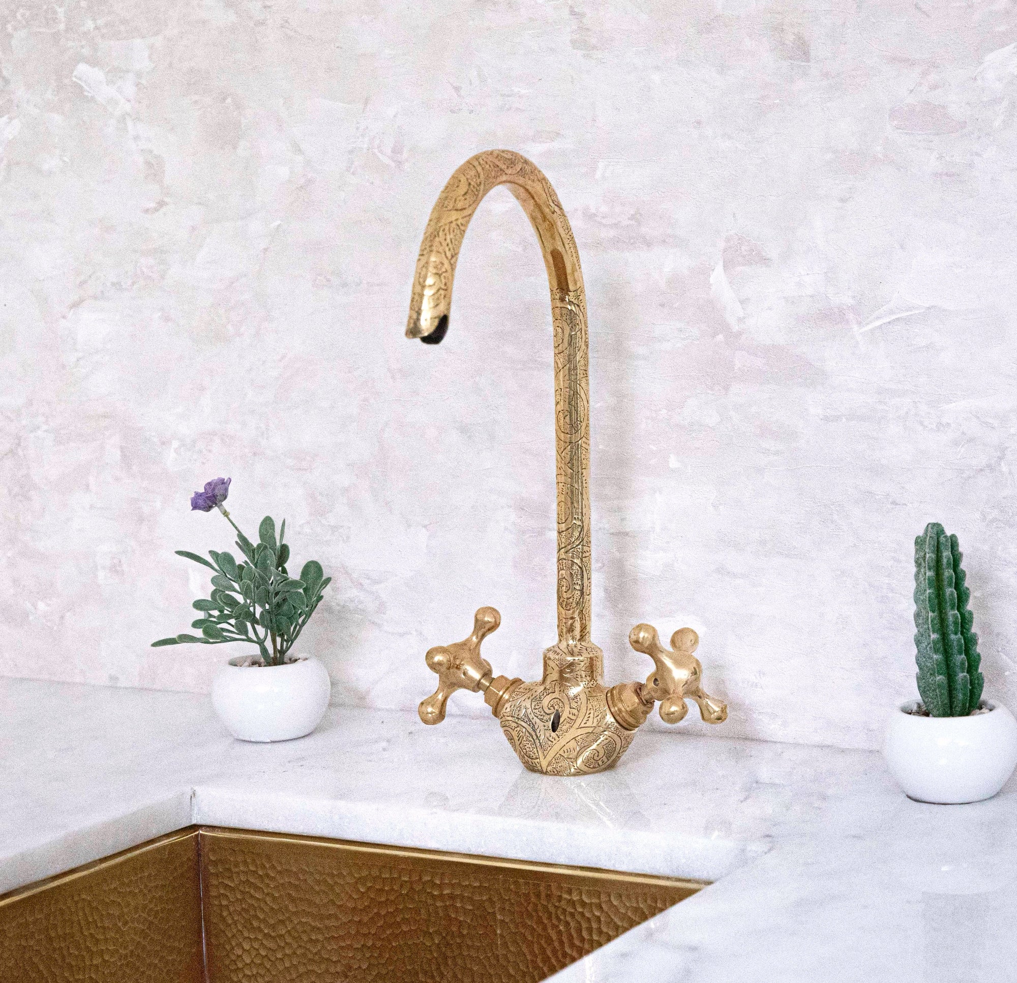 Unlacquered Brass Bathroom 3 Holes Faucet, Resin Vanity Faucet