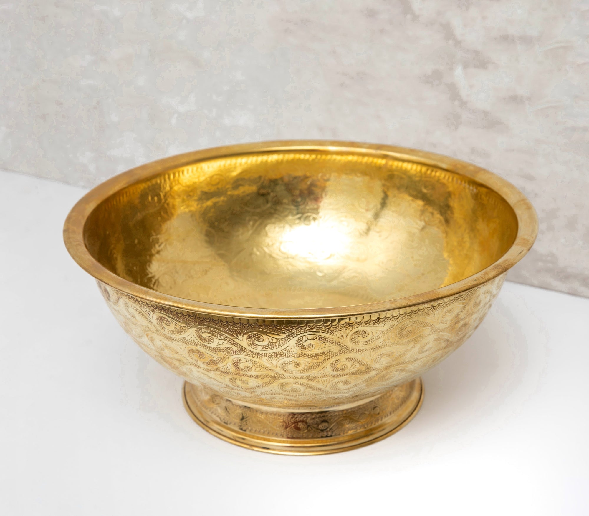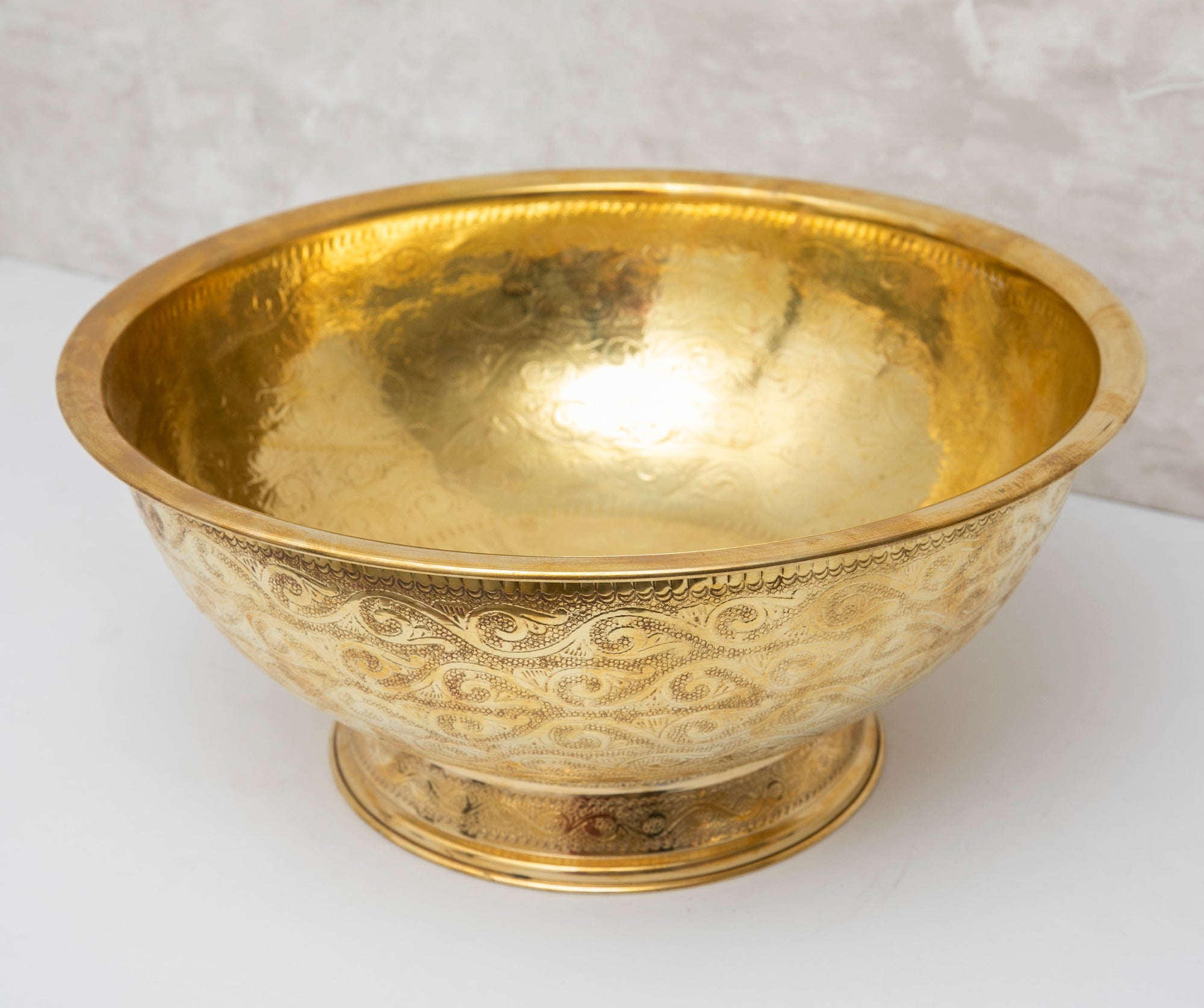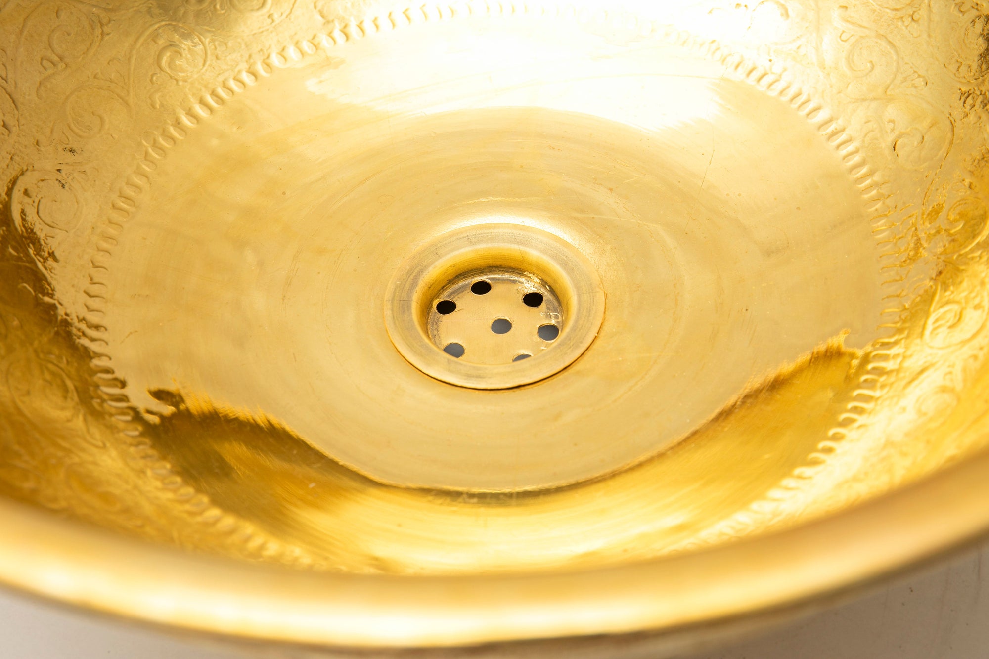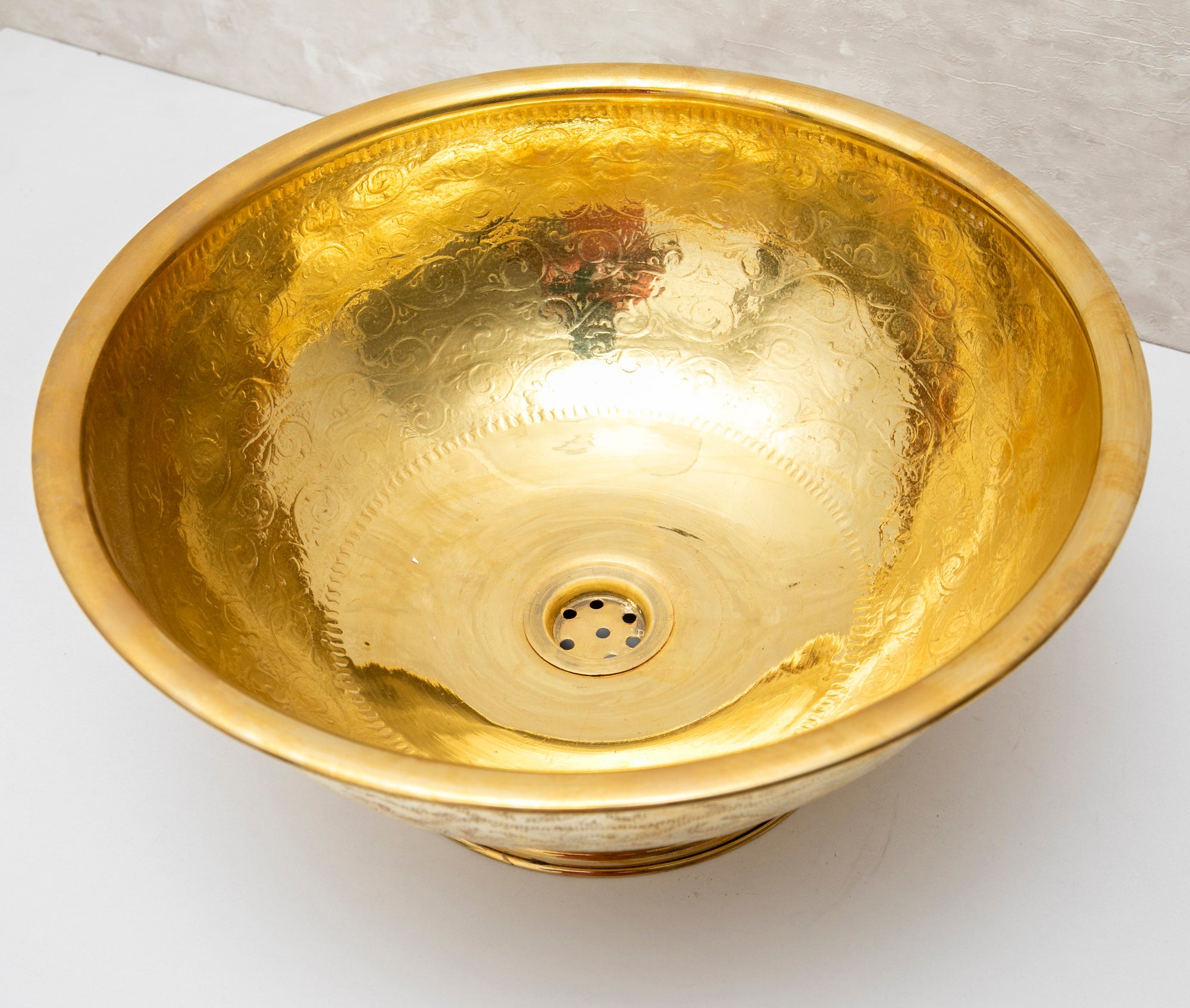 Engraved Brass Vessel Sink, Brass Bathroom Sink