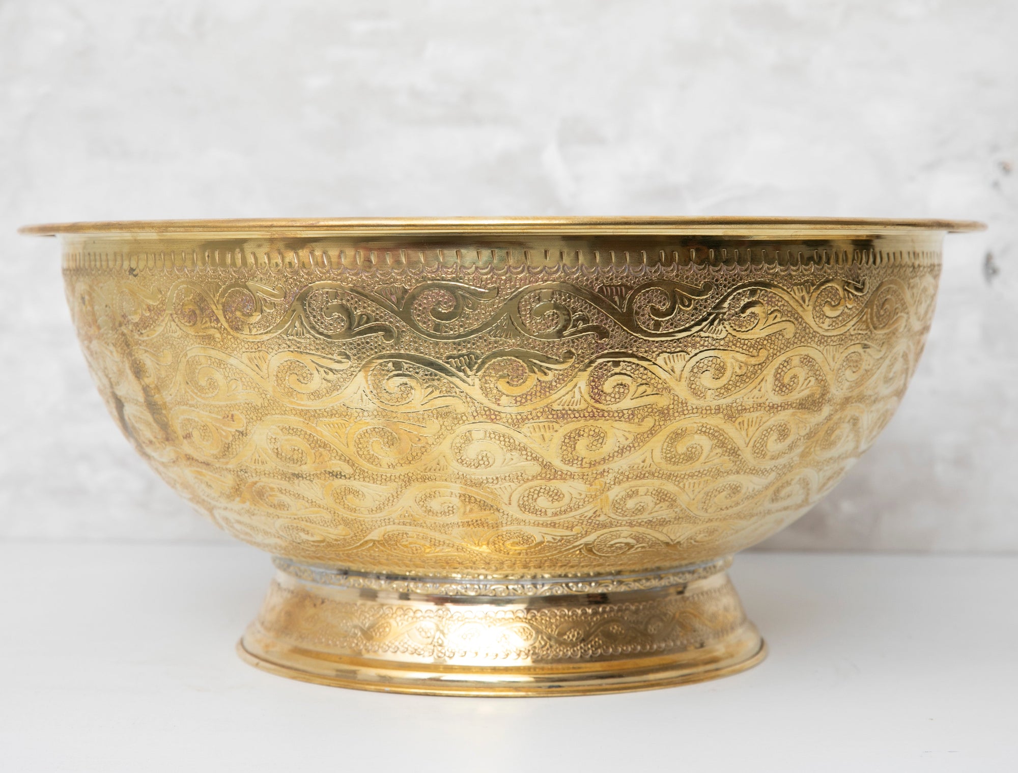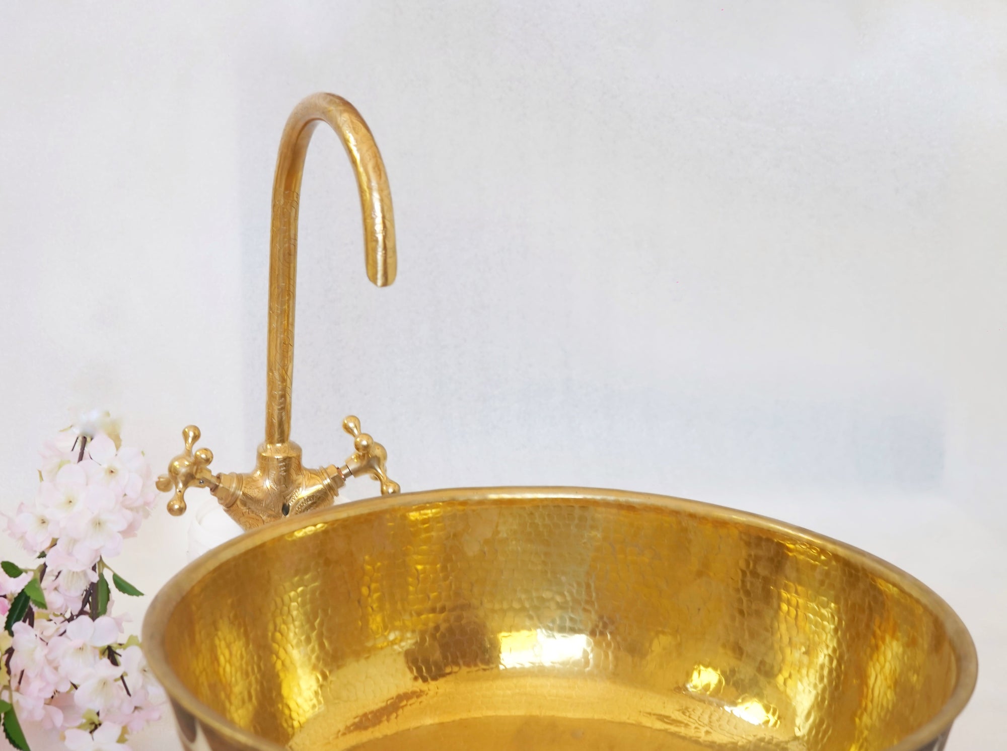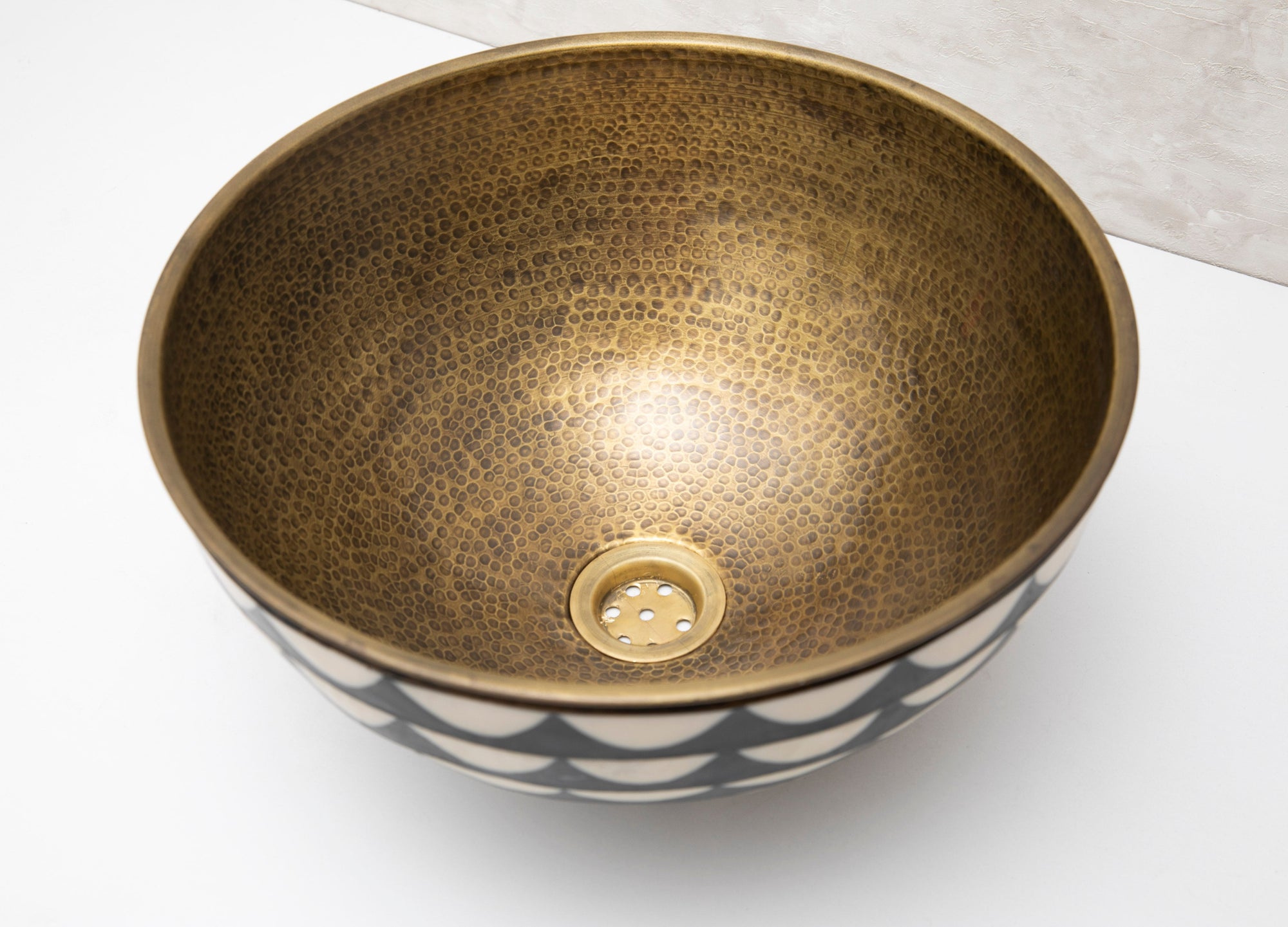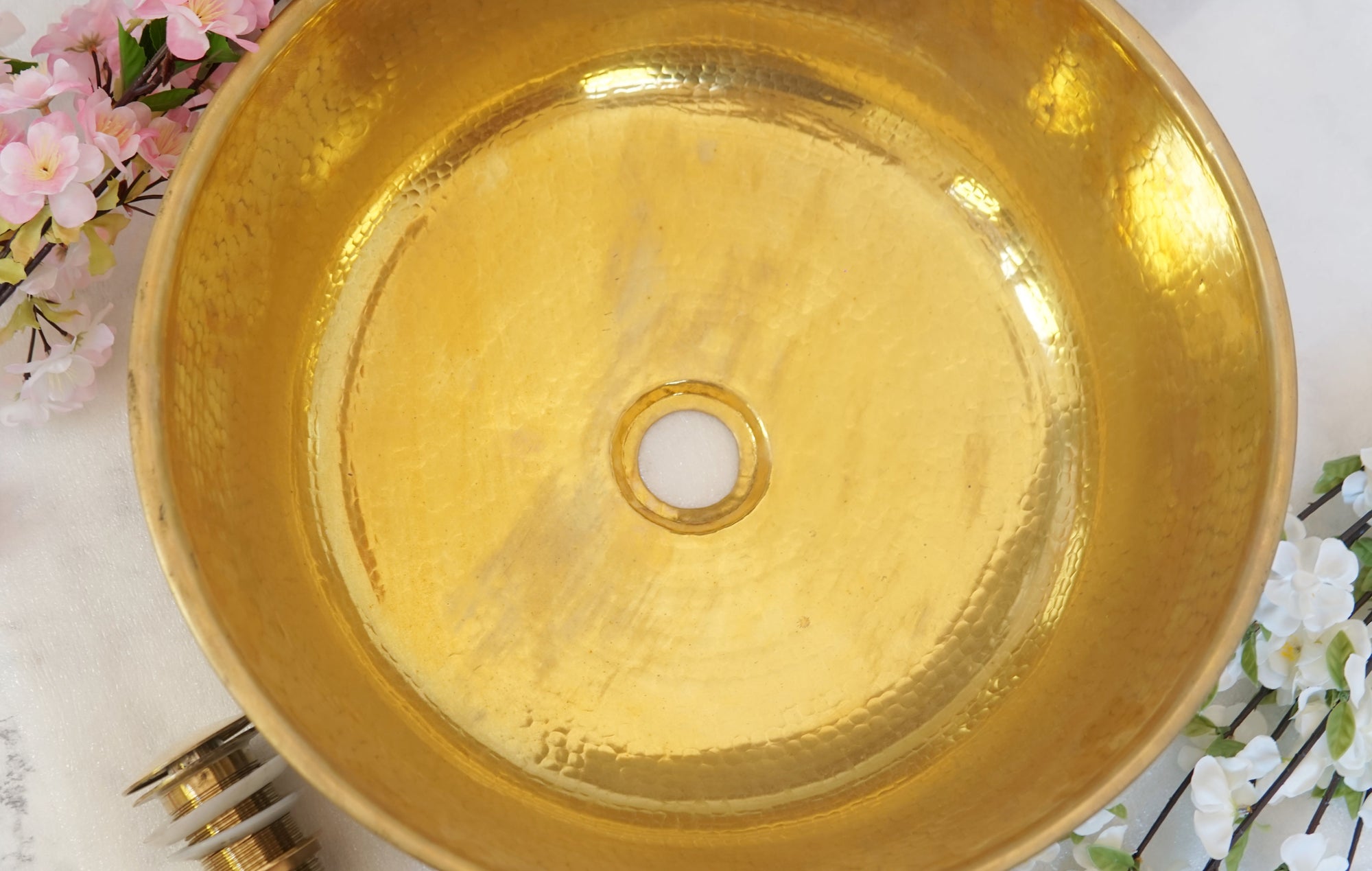 Engraved Brass Vessel Sink, Brass Bathroom Sink