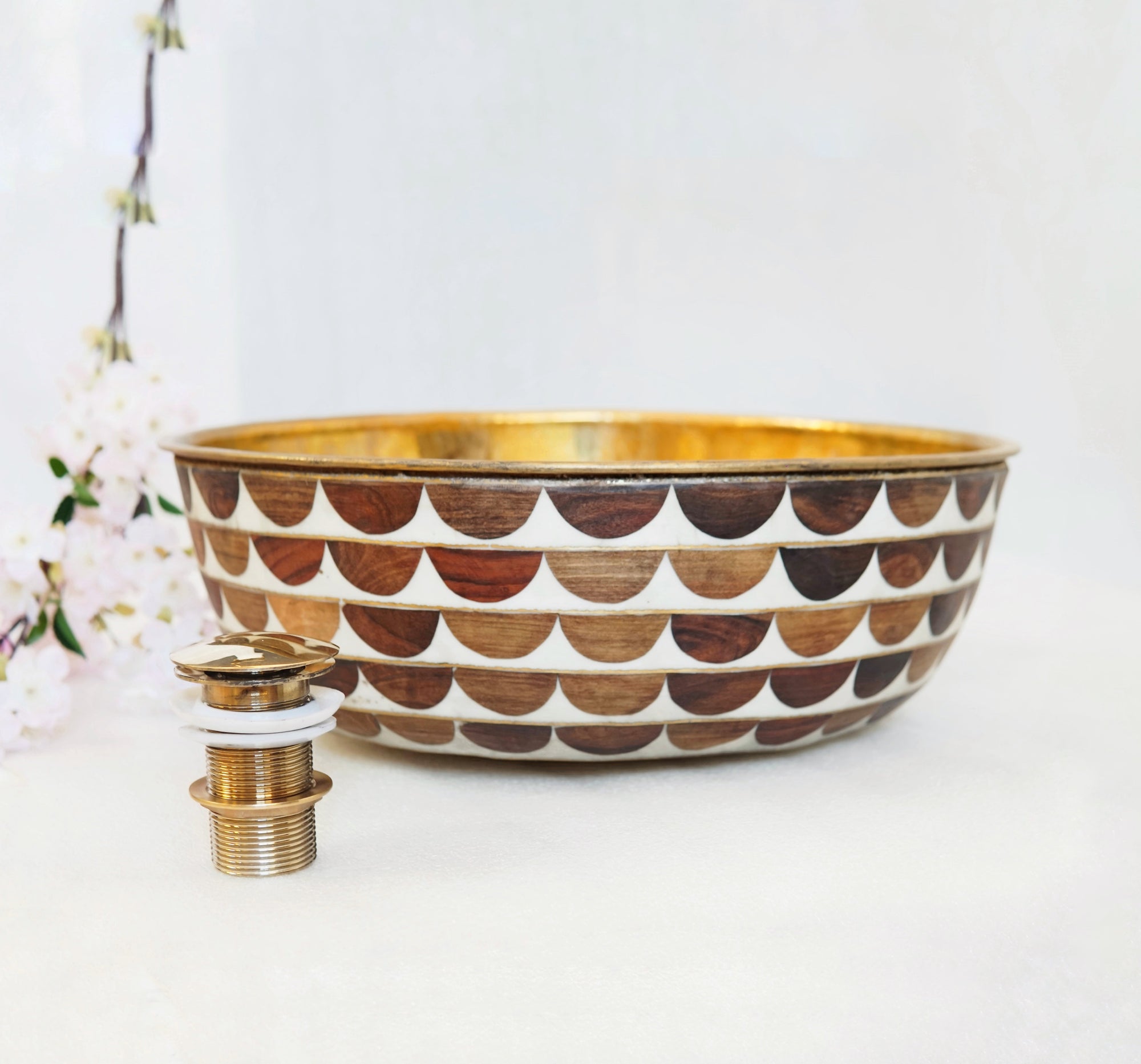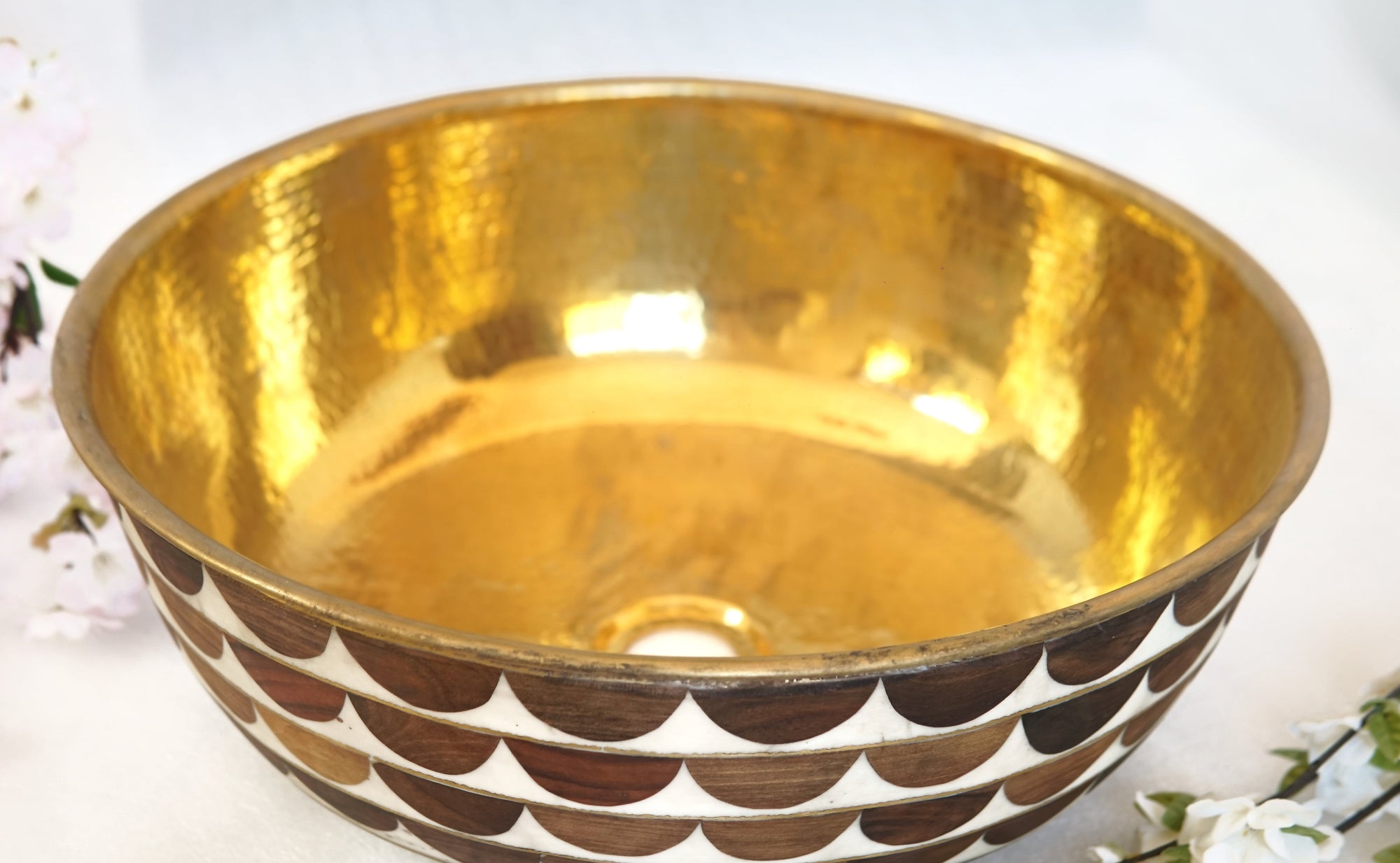 Wood & Brass Bathroom Vessel Sink, Brass Bathroom Sink